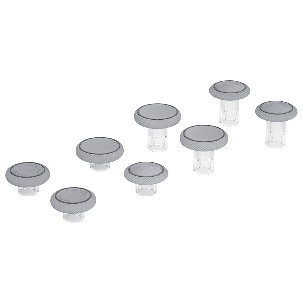 交換可能なテクスチャ付きサムスティックには、2種類の高さ、3種類のエルゴノミックなサムグリップデザイン(ドーム型、凹型、凹型拡張型)があり、コントローラーを柔軟に操作し、ターゲットを迅速に捕えることで精度を向上させます。