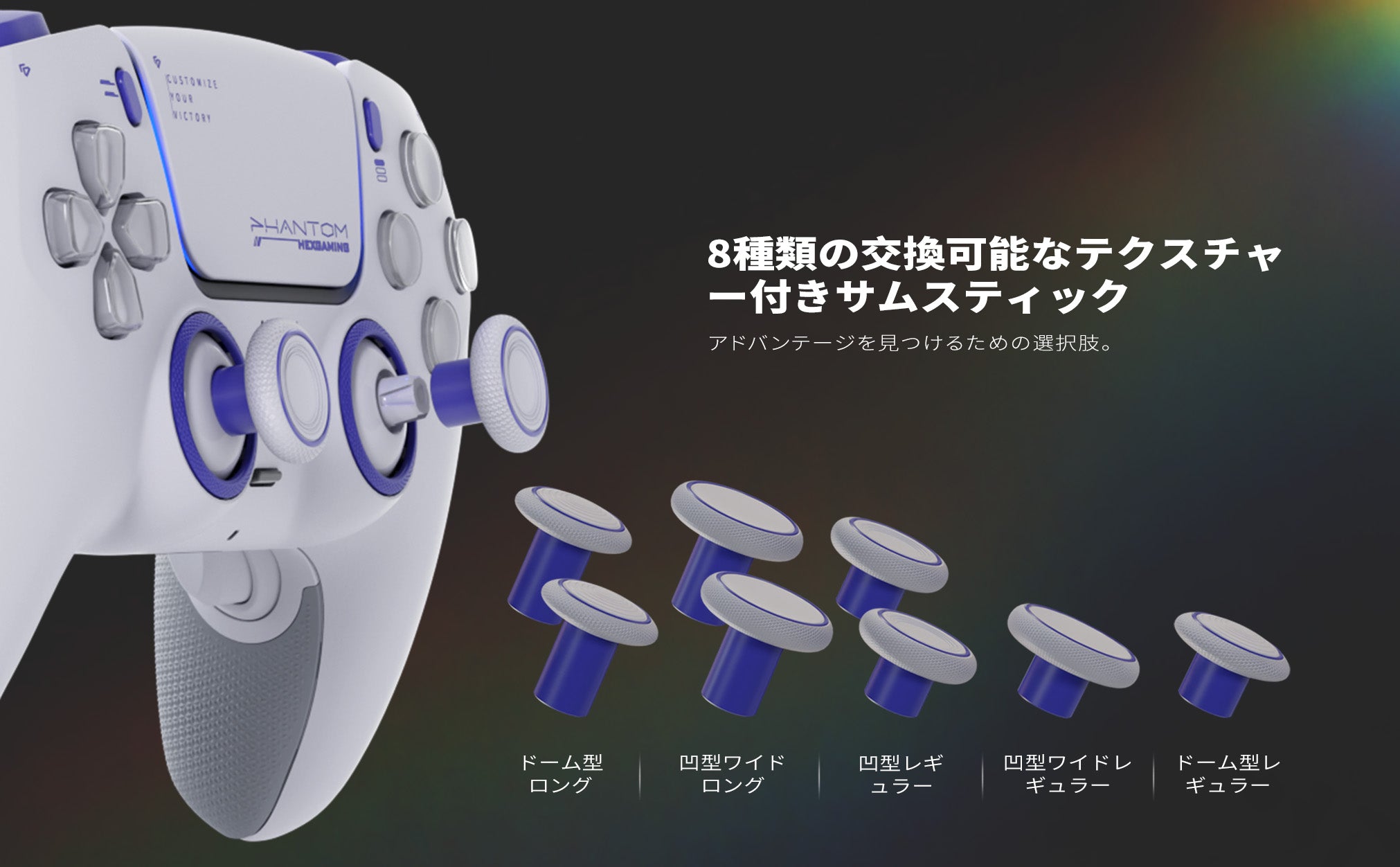 8種類の交換可能なテクスチャーサムスティックオプションで、あなたのアドバンテージを見つけよう。