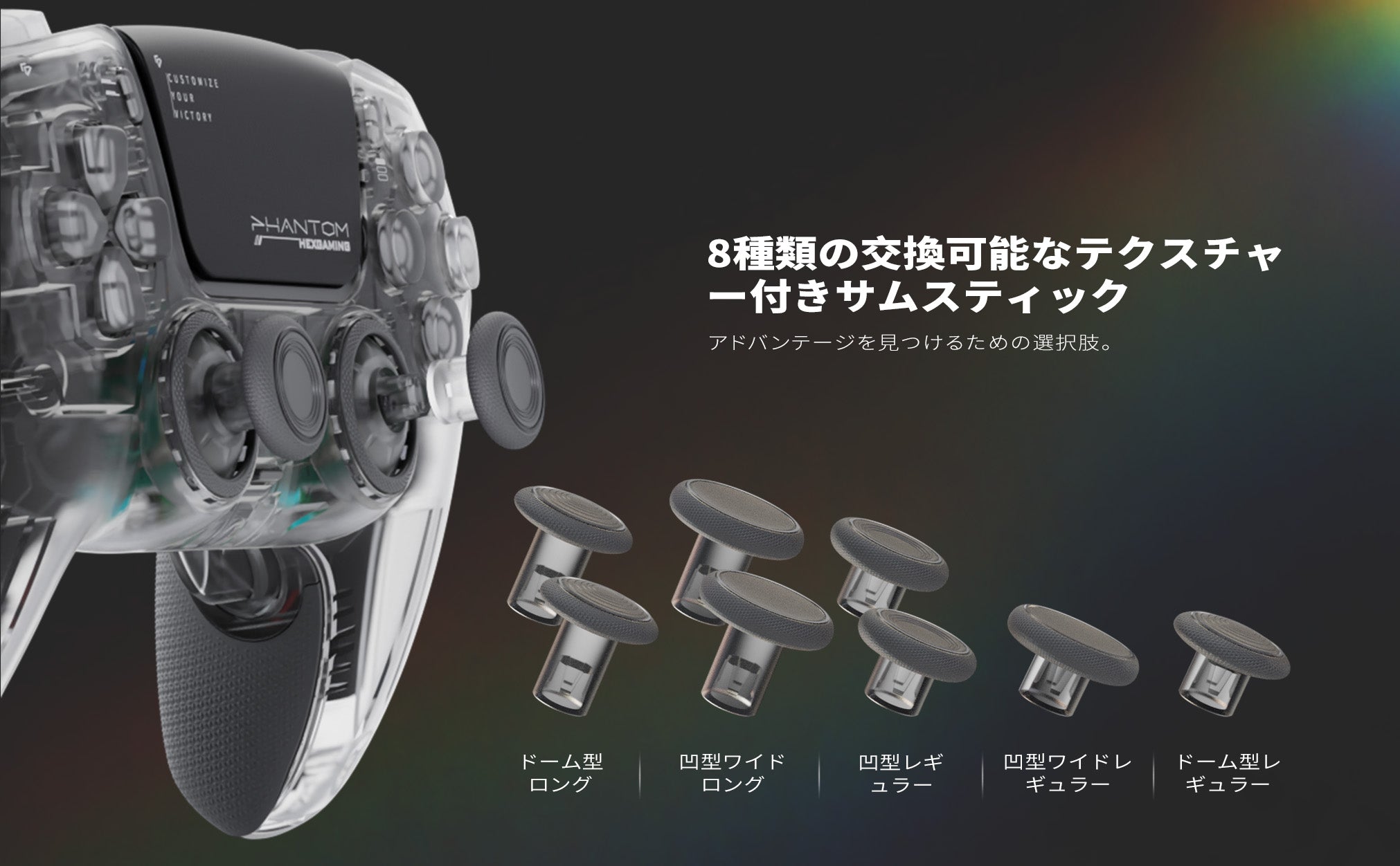 8種類の交換可能なテクスチャーサムスティックオプションで、あなたのアドバンテージを見つけよう。