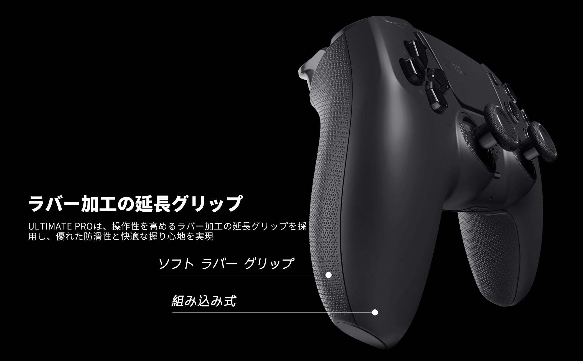 エンハンスドグリップ – 拡張ラバーグリップと人間工学に基づいた一体型デザインにより、長時間のプレイでも疲れにくく、安定した操作感を実現します。