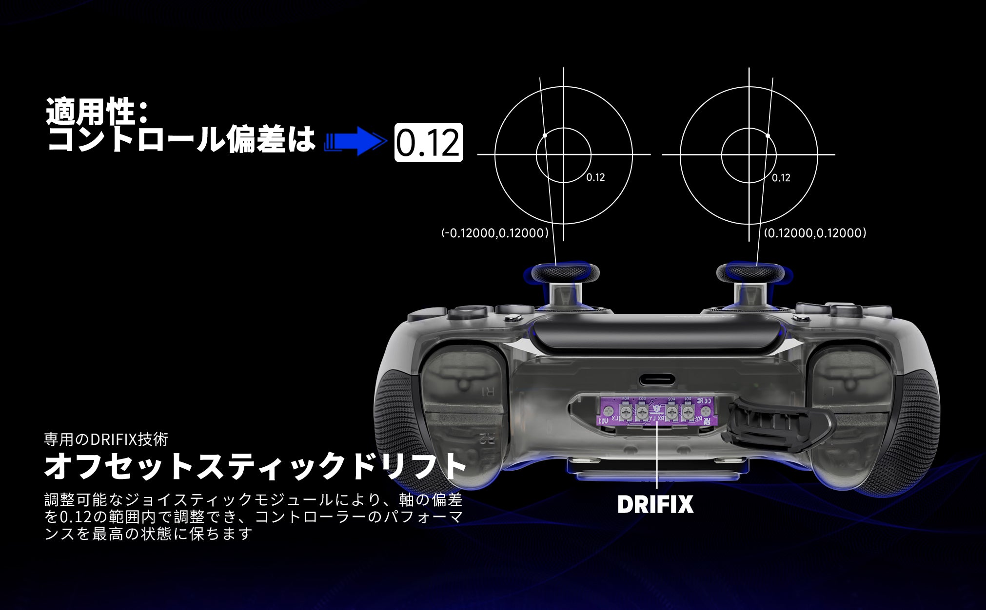 高精度ジョイスティック(調整モジュール) – 精度を維持し、ドリフトを防ぐ調整可能なジョイスティックモジュールを搭載。軸のズレを0.12以内に補正し、スティックドリフトとは無縁の安定した操作を実現します。